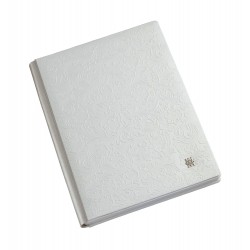 Fotolibro con copertina in ecopelle bianca e motivo grafico con possibilità di scelta tra vari colori.